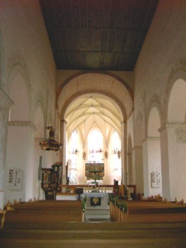 Unter dem Anstrich der Holzbretterdecke im Langhaus ist eine zauberhaft bemalte dekorative Decke mit der Jahreszahl 1542 freigelegt worden. Auch die zarten Blumemuster in den wieder unbehindert sichtbaren Gewölben sind ursprünglich, ebenso die Fresken an einigen Pfeilern.