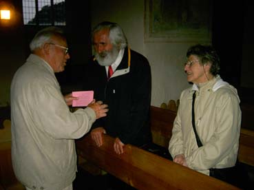 evangelische und katholische Christen nach dem Gottesdienst im Gespräch |